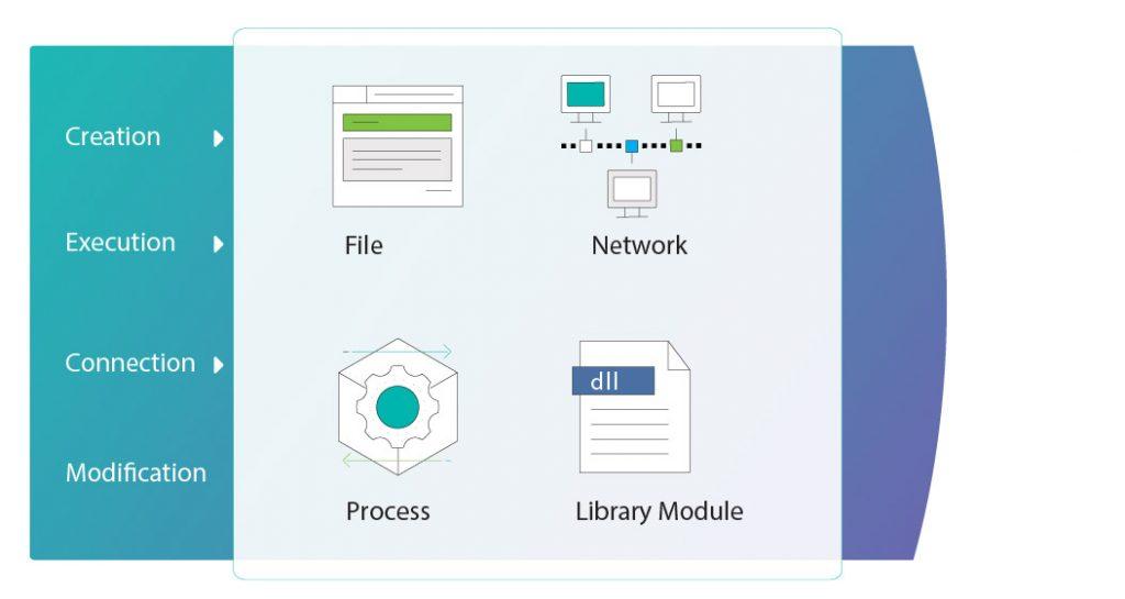 • Endpoint activity monitoring: File, Registry, Process, DLL, etc.