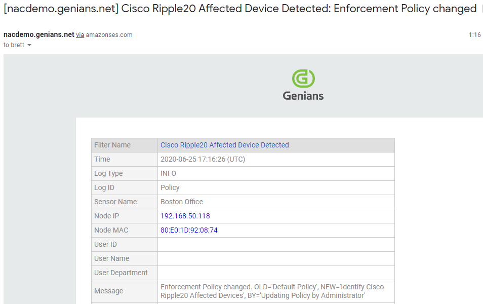Ripple20 will be with us for some time and navigating through how to mitigate these vulnerabilities requires a tiered approach of granular visibility on all types of networks, including remote networks with IoT, ICS and networking equipment. Having a non-disruptive, rapidly deployable option for network visibility is key. Once visibility is obtained, having an automated system configured to classify and optionally restrict access with no manual intervention by security Admins ensures the mitigation process does not become human intensive. And finally, flexible notification options are key in today’s workplace. This includes the option to push notifications via email, Slack, Teams, ServiceNow or other collaborative tools that are more and more prevalent in the dynamic work environment that the average Cybersecurity professional finds themselves active in today.