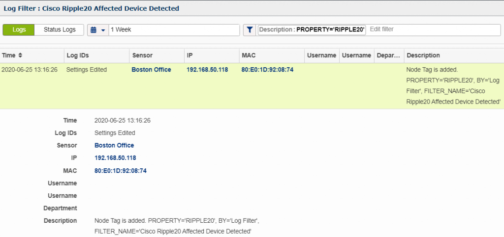 Stay tuned for a future blog on Ripple20 where we will discuss a different approach using CVE related information correlated to active nodes to identify nodes requiring mitigation.